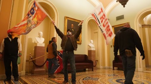 The rioters took over the House and Senate chambers, smashed windows and waved Trump, American and Confederate flags.