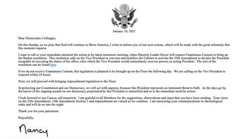 She told her caucus, now scattered across the country on a two-week recess, to "be prepared to return to Washington this week" but did not say outright that there would be a vote on impeachment.