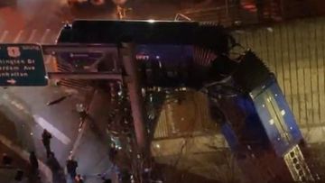 Seven people have been injured after a bus crashed through an overpass on a major Bronx freeway.